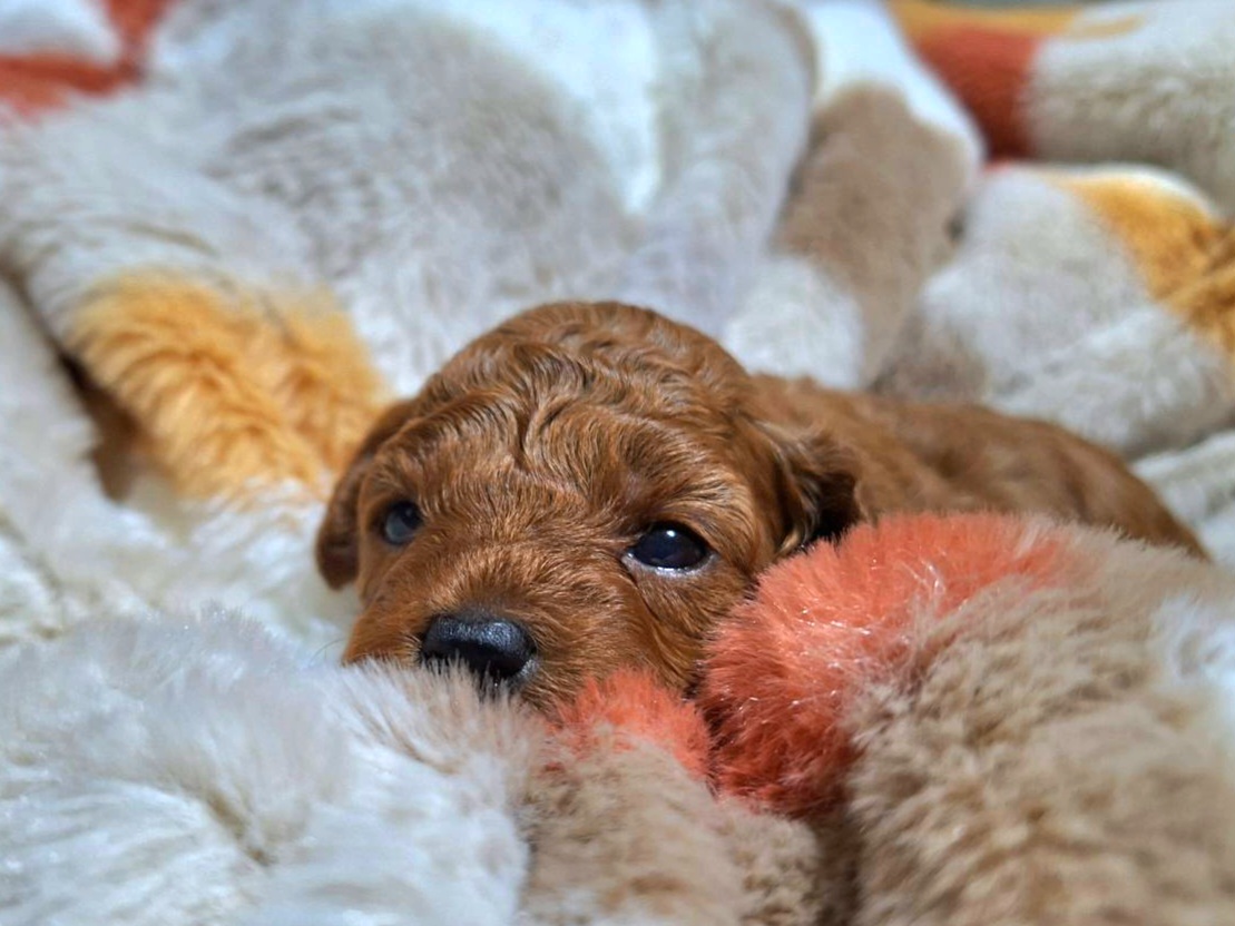 タイニープードルの女の子です。毎日ミルクを、飲みコロコロに、太って寝てばかりですが(爆)たまに動く時の仕草がたまらなくかわいい🎀